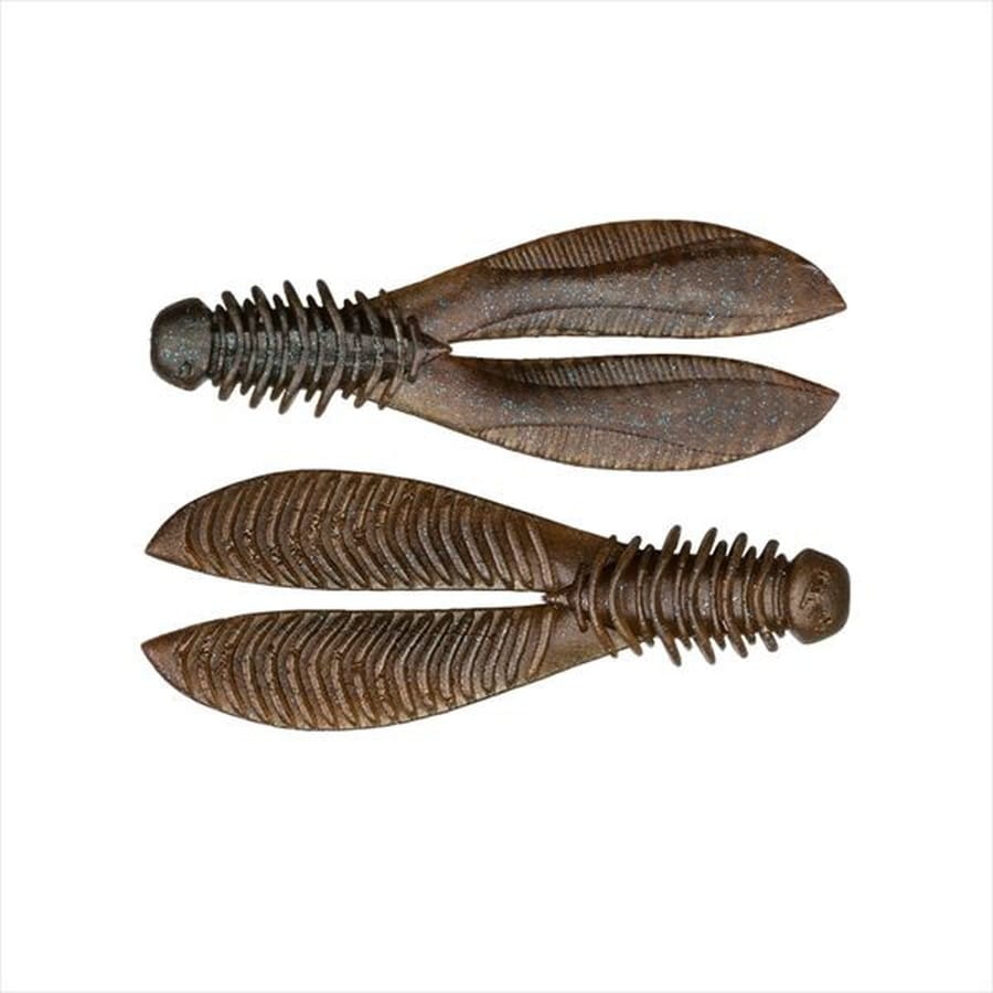 ボディ全体に掘られたリブが水を掴み、強く水を動かし存在をアピールします。テール裏のリブは放置していても僅かな水流を捉え揺らめき、フィネスなアプローチを可能にします。縫い刺しで使用する事で、アクション時やバイト時にトレーラーが針先に巻き込まれフッキングを妨げるリスクを低減します。やや細めのテール設計でカバーに対するすり抜けが抜群。リブの恩恵でボディ全体で水を受け、アクション時の抵抗感を生み出し移動距離を抑え、誰でも魚を呼ぶことのできるジグストアクションを演出可能です。