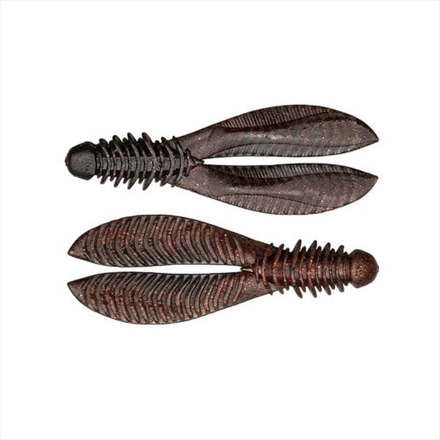 ボディ全体に掘られたリブが水を掴み、強く水を動かし存在をアピールします。テール裏のリブは放置していても僅かな水流を捉え揺らめき、フィネスなアプローチを可能にします。縫い刺しで使用する事で、アクション時やバイト時にトレーラーが針先に巻き込まれフッキングを妨げるリスクを低減します。やや細めのテール設計でカバーに対するすり抜けが抜群。リブの恩恵でボディ全体で水を受け、アクション時の抵抗感を生み出し移動距離を抑え、誰でも魚を呼ぶことのできるジグストアクションを演出可能です。