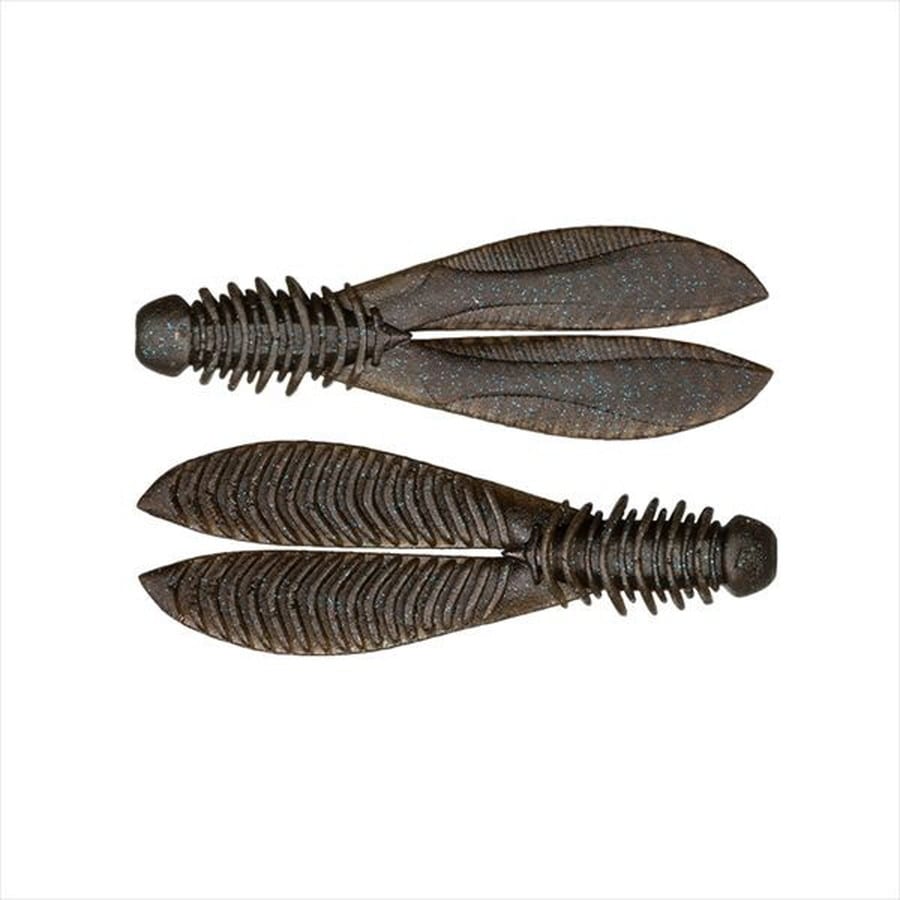 ボディ全体に掘られたリブが水を掴み、強く水を動かし存在をアピールします。テール裏のリブは放置していても僅かな水流を捉え揺らめき、フィネスなアプローチを可能にします。縫い刺しで使用する事で、アクション時やバイト時にトレーラーが針先に巻き込まれフッキングを妨げるリスクを低減します。やや細めのテール設計でカバーに対するすり抜けが抜群。リブの恩恵でボディ全体で水を受け、アクション時の抵抗感を生み出し移動距離を抑え、誰でも魚を呼ぶことのできるジグストアクションを演出可能です。