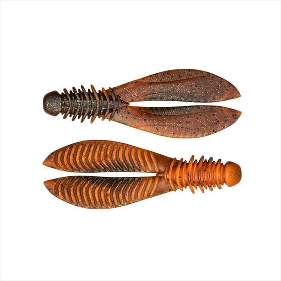 ボディ全体に掘られたリブが水を掴み、強く水を動かし存在をアピールします。テール裏のリブは放置していても僅かな水流を捉え揺らめき、フィネスなアプローチを可能にします。縫い刺しで使用する事で、アクション時やバイト時にトレーラーが針先に巻き込まれフッキングを妨げるリスクを低減します。やや細めのテール設計でカバーに対するすり抜けが抜群。リブの恩恵でボディ全体で水を受け、アクション時の抵抗感を生み出し移動距離を抑え、誰でも魚を呼ぶことのできるジグストアクションを演出可能です。