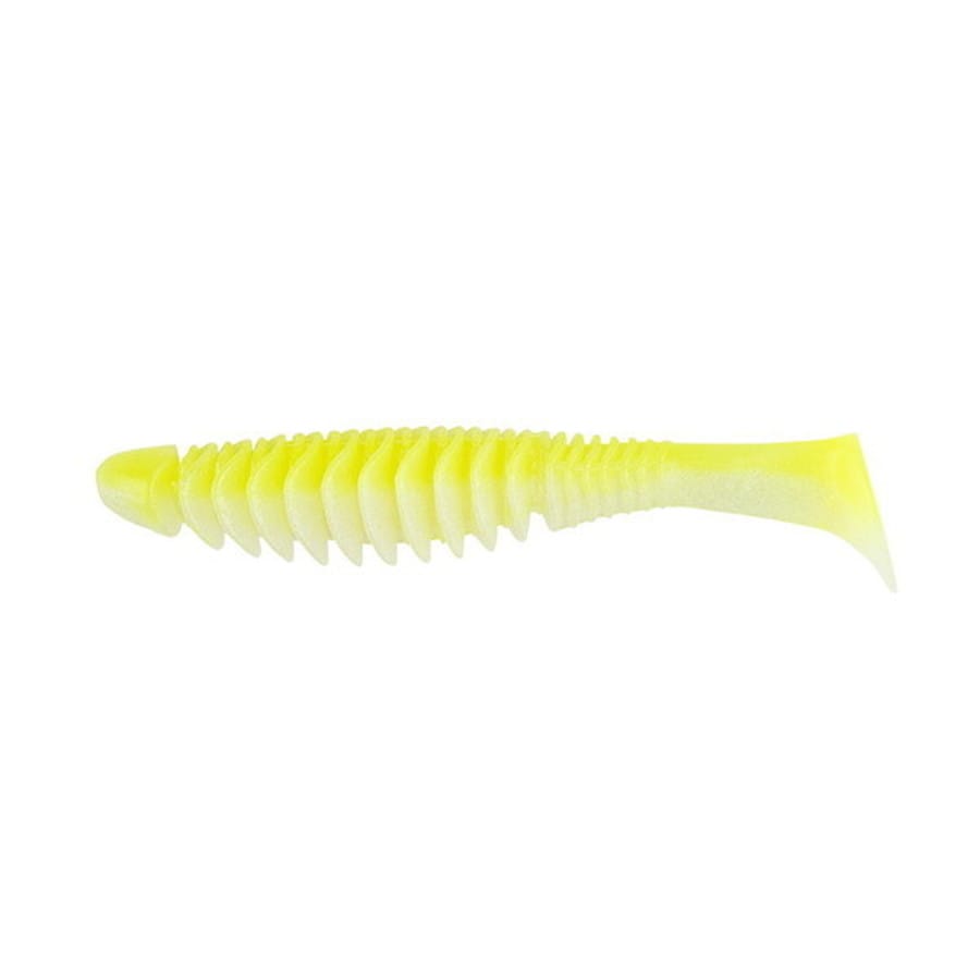 デッドスローリトリーブで水深2m~4mの一枚下のレンジを安定したスイム姿勢で攻略可能。障害物に対してコンタクトさせる方法や、ウィードトップを丁寧にトレース可能です。オフセットフックSCYTHE-サイス-との組み合わせで、リグのズレを極限まで抑えることが可能です。障害物をタイトにトレースし、コンタクトした際の不規則なアクションでバイトを誘発します。水に対する抵抗を最大限生み出すよう設計されたマルチリブ。水流をボディー全体に纏わりつかせ、スイミング中は細かく震えてバイトを誘発します。水の抵抗を効率よく捕まえデッドスローリトリーブでも安定したアクションを生み出します。
