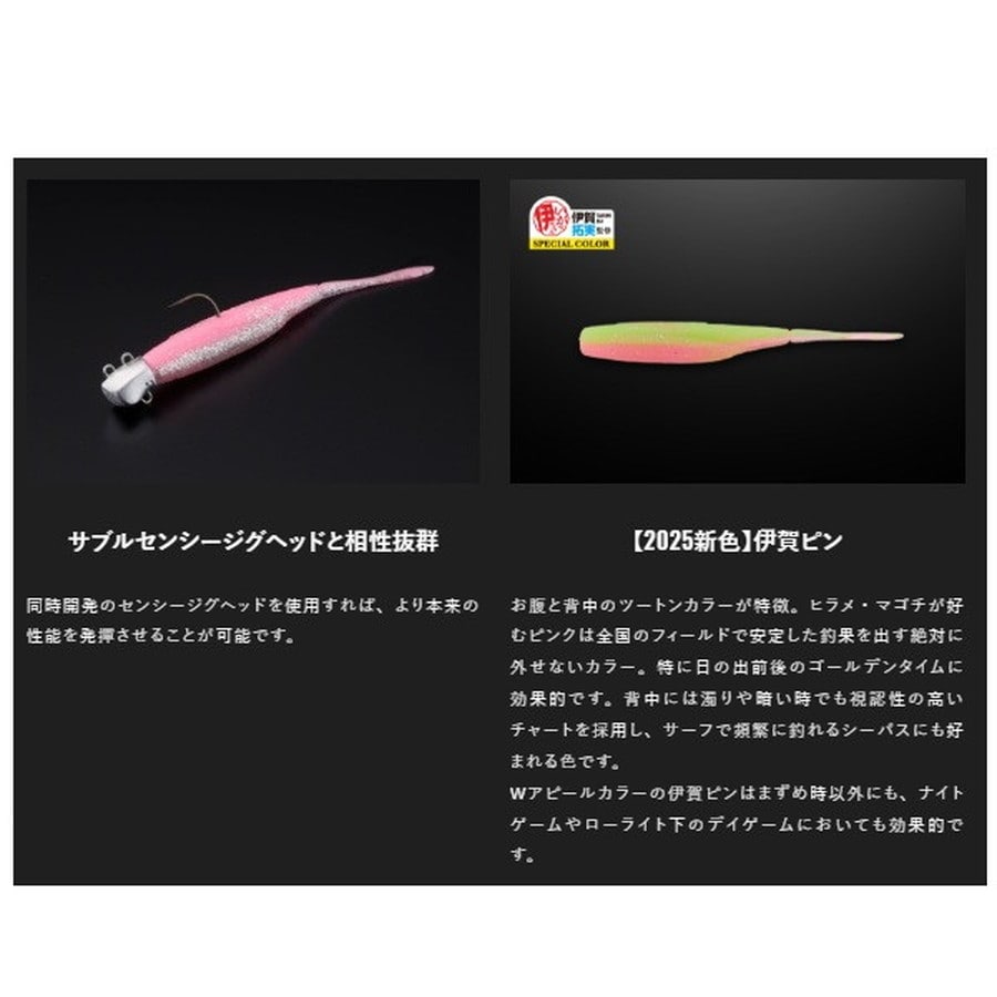 サブルセンシーテール SABULL SENSY TAIL激戦区で釣り勝つ「サーフフィネス」の威力。●軽量ジグヘッドとワームを駆使し、繊細なアプローチ仕掛けることで、ハイプレッシャーエリアのスレ切った魚にも口を使わせる「サーフフィネス」。この戦略に特化した「SENSYシリーズ」のワーム/ジグヘッドは、アクションの繊細さはもちろん、サーフという特殊なフィールドでの扱いやすさや、幅広い状況にアジャストできるラインナップで、サーフフィネスに完全対応します。●シリーズ中、最もフィネスに誘うことが可能な超繊細テールを持つモデル。スリムで扁平なテールと付け根のくびれにより、僅かな水流でも弱々しくバイブレーションし、適度なアピールと高い喰わせ力を発揮。何を投げても反応が得られない状況や、先行者に叩かれた後など、渋い状況での奥の手として活躍します。