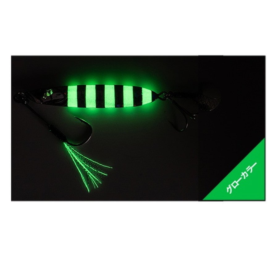 ただ巻きでOK 扱いやすさにこだわったブレードジグ。●ただ巻きOKのカンタン操作。ジャーキング・シャクリなどの難しいアクションは必要とせず、ただ巻きだけでオートマチックに釣れるアクションを演出し、青物を魅了します。操作感や飛距離、トラブルレス性能にも徹底的にこだわり、より快適に・より簡単に堤防青物を攻略することができます。●ハイバランス設計で快適な使用感。堤防・沖堤防での使用を想定し、ボディ・ブレード・アイ・フック・その他パーツに至るまで様々な要素でベストバランスを追究。安定した姿勢で低速~高速巻きまで対応するうえ、狙ったレンジを外し難く、足場の高い堤防でも足元近くまで巻き続けられる高いレンジキープ力を持ちあわせます。※最適なアクションを出すため、角度調整されたアイを採用しています。開封時のままご使用ください。●止めていても誘い続ける。フリーフォール・テンションフォール中もしっかりとブレードが回転し続けるため、ただ巻き後に「止め」を入れた際にもブレードが誘い続け、見切る隙を与えることなくバイトに持ち込むことができます。