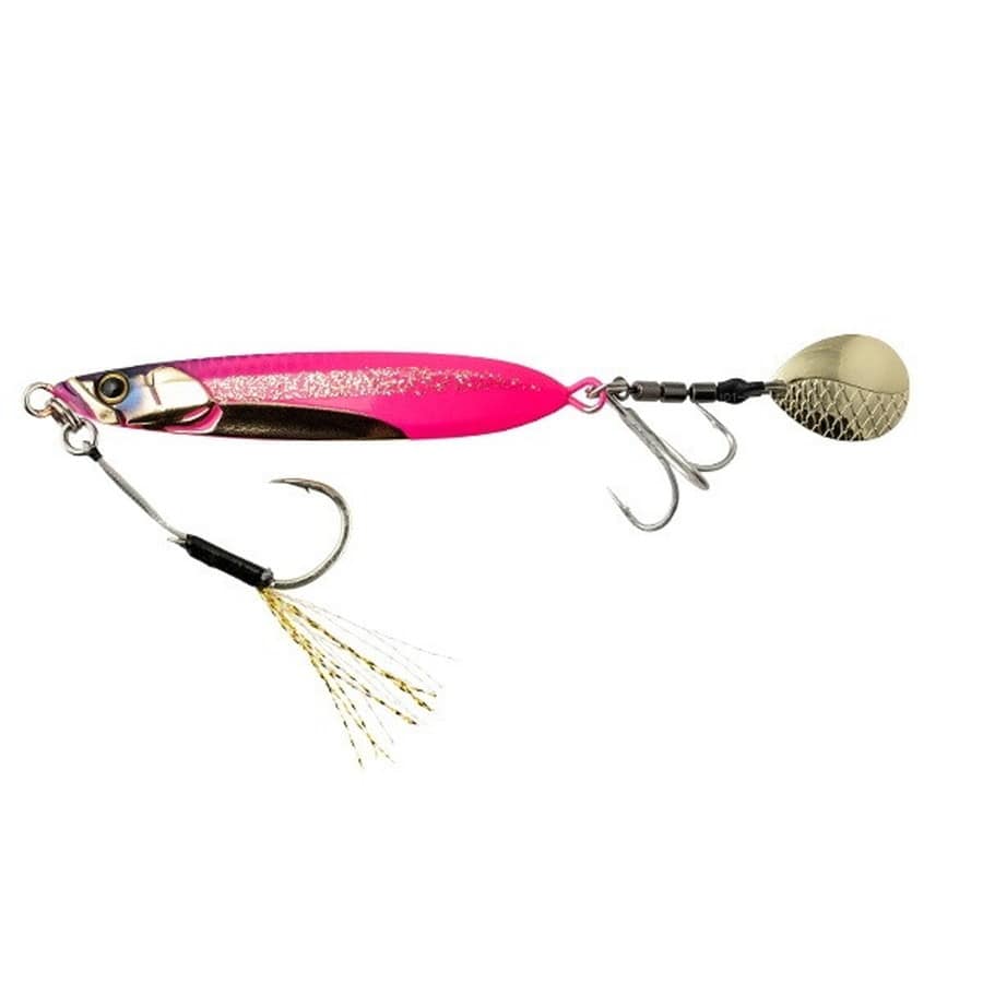 ただ巻きでOK 扱いやすさにこだわったブレードジグ。●ただ巻きOKのカンタン操作。ジャーキング・シャクリなどの難しいアクションは必要とせず、ただ巻きだけでオートマチックに釣れるアクションを演出し、青物を魅了します。操作感や飛距離、トラブルレス性能にも徹底的にこだわり、より快適に・より簡単に堤防青物を攻略することができます。●ハイバランス設計で快適な使用感。堤防・沖堤防での使用を想定し、ボディ・ブレード・アイ・フック・その他パーツに至るまで様々な要素でベストバランスを追究。安定した姿勢で低速~高速巻きまで対応するうえ、狙ったレンジを外し難く、足場の高い堤防でも足元近くまで巻き続けられる高いレンジキープ力を持ちあわせます。※最適なアクションを出すため、角度調整されたアイを採用しています。開封時のままご使用ください。●止めていても誘い続ける。フリーフォール・テンションフォール中もしっかりとブレードが回転し続けるため、ただ巻き後に「止め」を入れた際にもブレードが誘い続け、見切る隙を与えることなくバイトに持ち込むことができます。