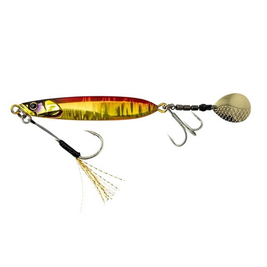 ただ巻きでOK 扱いやすさにこだわったブレードジグ。●ただ巻きOKのカンタン操作。ジャーキング・シャクリなどの難しいアクションは必要とせず、ただ巻きだけでオートマチックに釣れるアクションを演出し、青物を魅了します。操作感や飛距離、トラブルレス性能にも徹底的にこだわり、より快適に・より簡単に堤防青物を攻略することができます。●ハイバランス設計で快適な使用感。堤防・沖堤防での使用を想定し、ボディ・ブレード・アイ・フック・その他パーツに至るまで様々な要素でベストバランスを追究。安定した姿勢で低速~高速巻きまで対応するうえ、狙ったレンジを外し難く、足場の高い堤防でも足元近くまで巻き続けられる高いレンジキープ力を持ちあわせます。※最適なアクションを出すため、角度調整されたアイを採用しています。開封時のままご使用ください。●止めていても誘い続ける。フリーフォール・テンションフォール中もしっかりとブレードが回転し続けるため、ただ巻き後に「止め」を入れた際にもブレードが誘い続け、見切る隙を与えることなくバイトに持ち込むことができます。