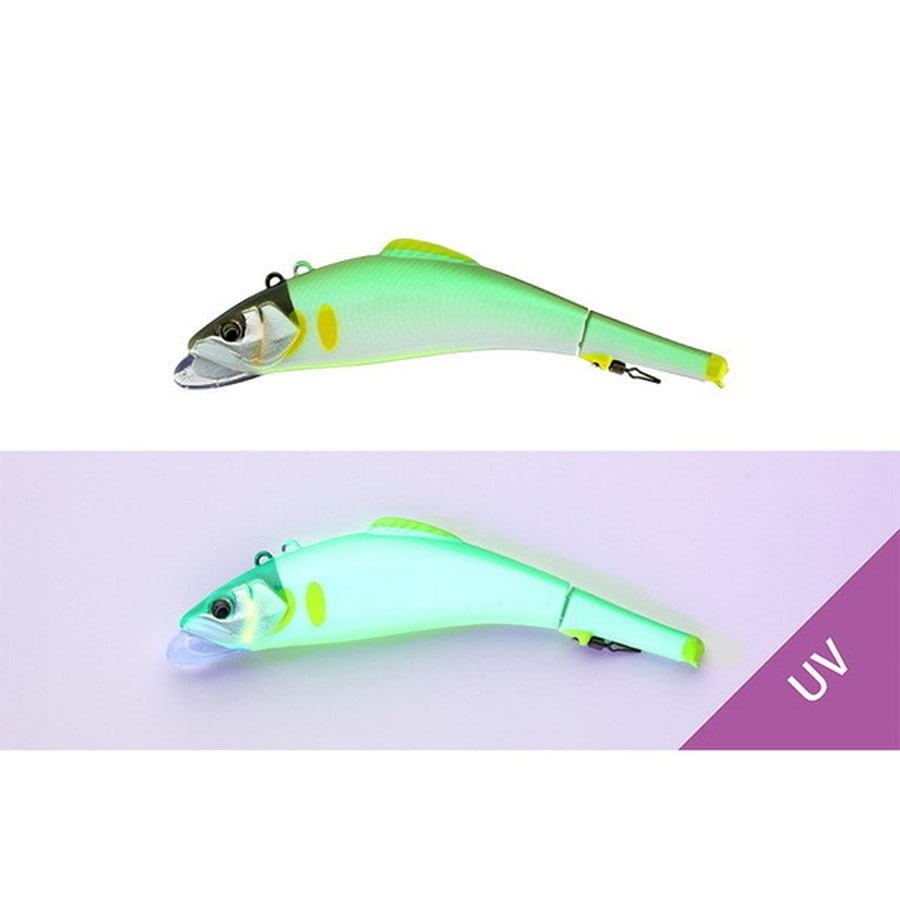 流れの強い急瀬など、リップ付きルアーでは攻めきれない状況でもリップレスの為、動きが破綻しにくく、まるでアユが苔を食んでいるかのように艶めかしいアクションでアピールします。ボディー2か所に設けられたアイにより頭よりのアイはタイトロールアクション、後部アイは煌きの強いロールアクションとなっております。オトリバイブをドン深エリア攻略用にヘビーウェイト化。ルアーを素早くボトムに送り込む事ができ、強い流れの中でも底岩を舐める様に引いてくる事が可能です。特に終盤の深場に落ちた大型アユ攻略にも威力を発揮します。