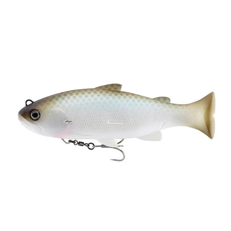 『釣れる躍動感』-生き生き泳ぐスイムベイト- コアを内蔵せず、ボディマテリアルを可能な限り柔らかく設定しています。ゆっくり巻いても適度に頭を振り、まるで糸を結んでいないように泳ぐ「ナチュラルな全身駆動アクション」が特徴です。浮力の高いマテリアルを採用したフローティング仕様でデリバリー。使用するフックの位置やサイズ・量をカスタマイズできる幅が広がりました。またネイルシンカーを使用し、任意のレンジを攻略する事が可能です。※使用する際は必ずネイルシンカーを用いて調整を行ってください。