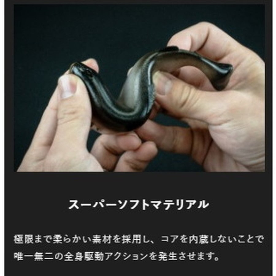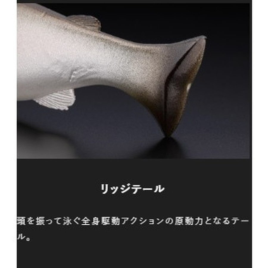 『釣れる躍動感』-生き生き泳ぐスイムベイト- コアを内蔵せず、ボディマテリアルを可能な限り柔らかく設定しています。ゆっくり巻いても適度に頭を振り、まるで糸を結んでいないように泳ぐ「ナチュラルな全身駆動アクション」が特徴です。浮力の高いマテリアルを採用したフローティング仕様でデリバリー。使用するフックの位置やサイズ・量をカスタマイズできる幅が広がりました。またネイルシンカーを使用し、任意のレンジを攻略する事が可能です。※使用する際は必ずネイルシンカーを用いて調整を行ってください。