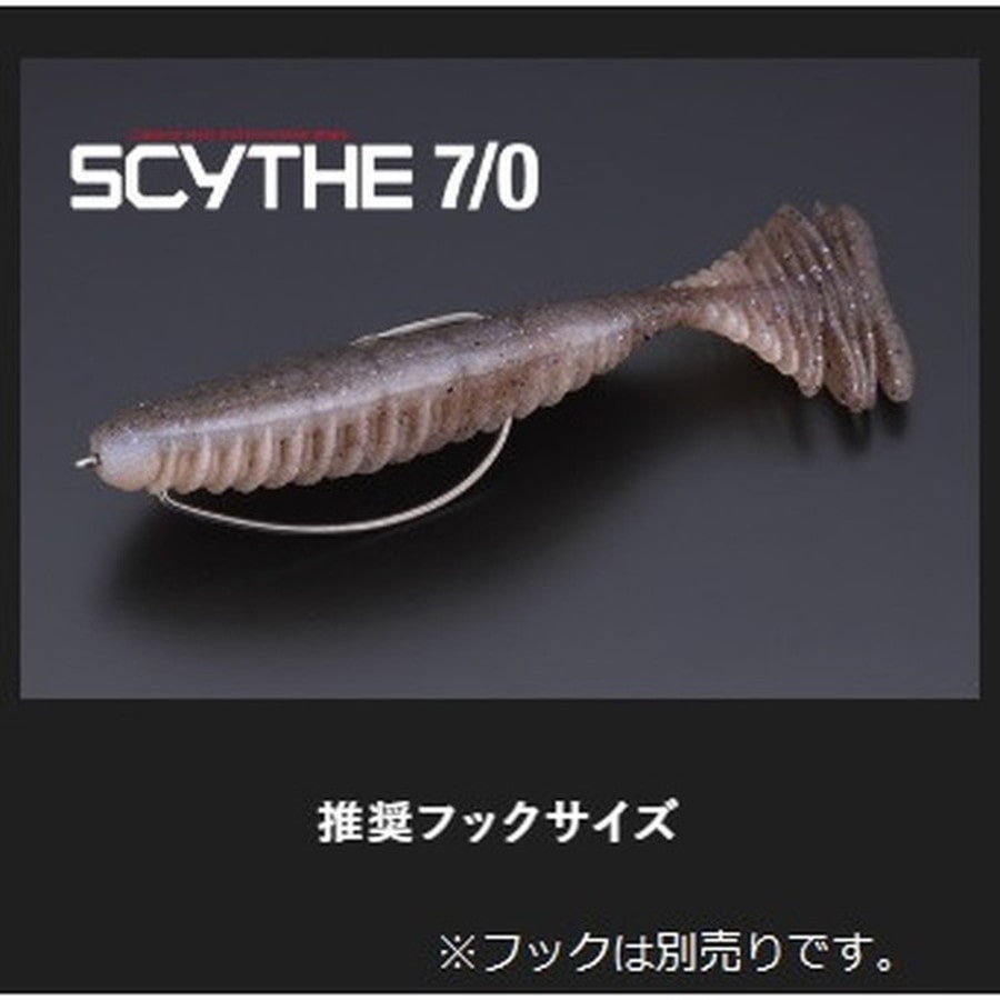 フィッシュイーターが強烈に反応するスパイラルフォールを演出します。その際、特殊デザインのテールが自発的にアクションします。ボトム着底後、初動のずる引きでアクションが抜けてしまいボトムから浮いてしまう事を抑制します。ボトムに食いつくアクションと波動がバイトを誘発します。