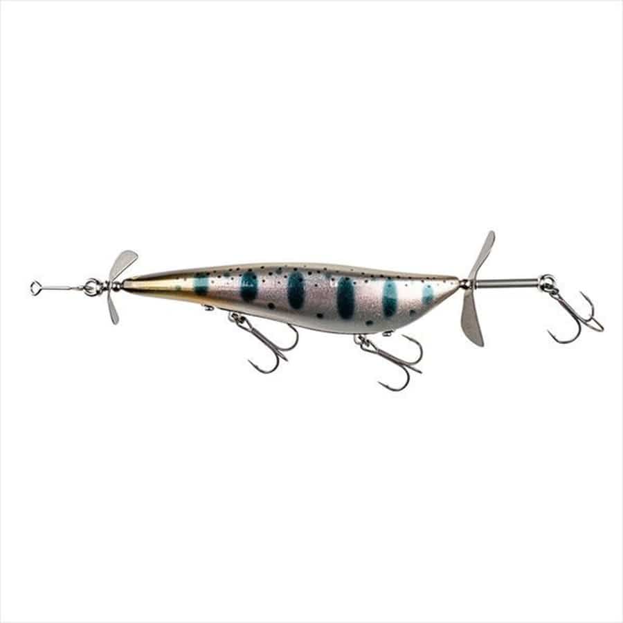 ジャークアクションで水しぶきを上げて魚に気づかせ、浮上させて喰わせるリッピングテクニックに高次元で対応。前後のプロップが奏でるサウンドはポッパーの甘いポップ音とは一味違う金属特有のサウンドでアピールします。ストラクチャー際などのピンスポット戦略やエビボイルパターンに有効です。