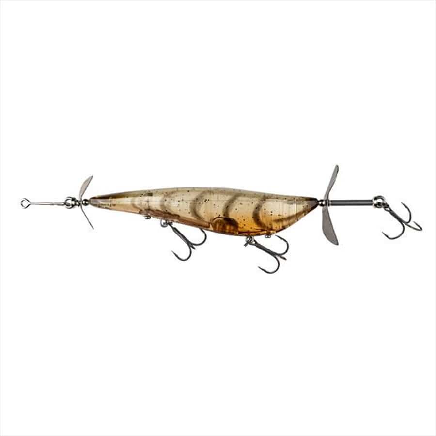 ジャークアクションで水しぶきを上げて魚に気づかせ、浮上させて喰わせるリッピングテクニックに高次元で対応。前後のプロップが奏でるサウンドはポッパーの甘いポップ音とは一味違う金属特有のサウンドでアピールします。ストラクチャー際などのピンスポット戦略やエビボイルパターンに有効です。