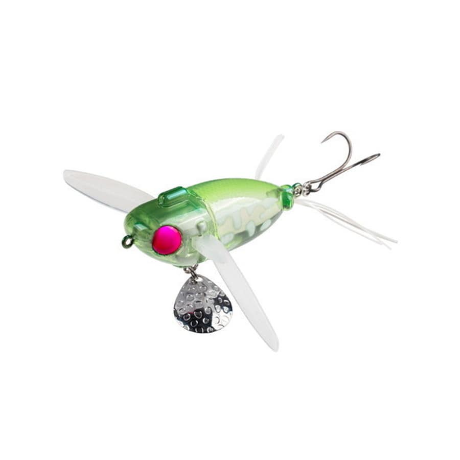 リアボディには中空構造・ソフト素材を採用。ソフトでナチュラルな着水音で魚に違和感を与えません。また、ボディとフックの接触音を抑えることで余計なプレッシャーを軽減します。ソフトウィングならではの独自のサウンドと柔らかい水押しで魚を魅了します。ボディに対してやや下向きに設定したソフトウィングのポジションはアクションレスポンスを追求しており、軽くラインテンションがかかるだけでアクションを開始し足場の高いポイントでの使用も可能です。