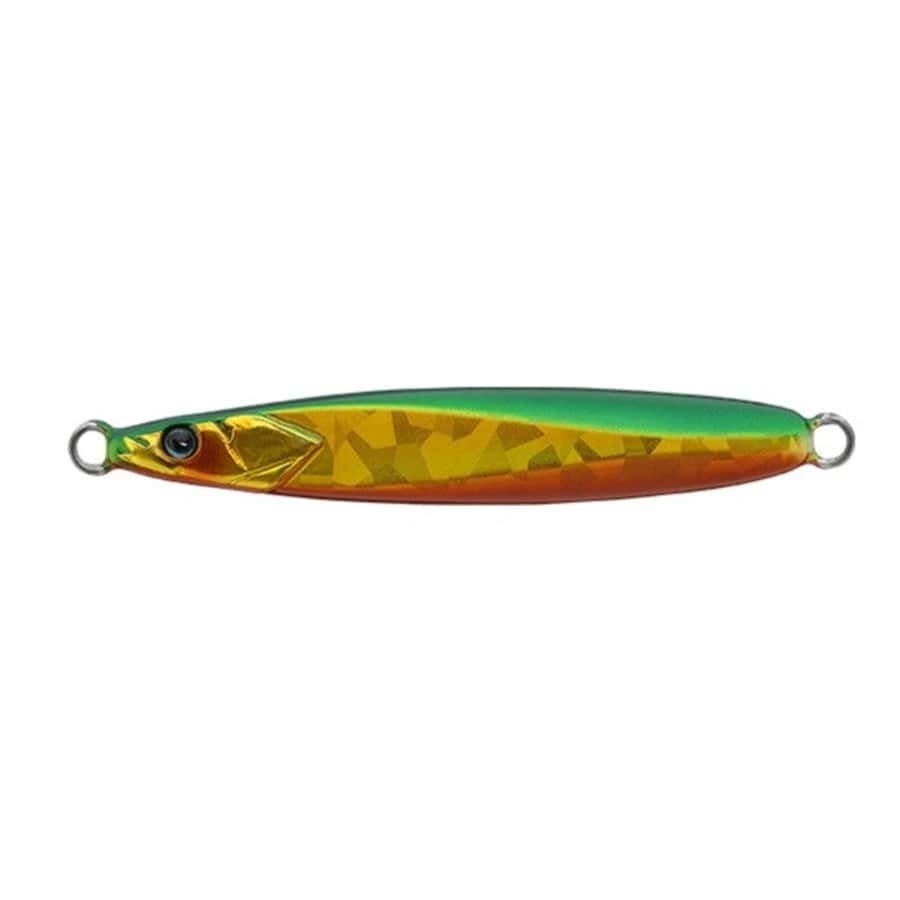 コンパクトなボディ設計と相まって、超高速フォール×マイクロシルエットを実現。近年ますます難しくなるタチウオジギングシーンにも見られるマイクロベイトパターンの攻略に最適です。●マイクロシルエット。高比重タングステン(TG)素材かつ、ボディをやや厚めに設計することで、さらにシルエットのコンパクト化を実現。これにより通常であればシャクリの抵抗が大きくなるところを軽減しつつ、シルエットのコンパクトさを保ったままアプローチを可能にします。●リアバランス設計によるスピードフォール。後方重心設計により、潮流を突き抜けるような素早いフォールスピードを実現。魚のいるレンジへ、いち早くルアーを届けることができます。