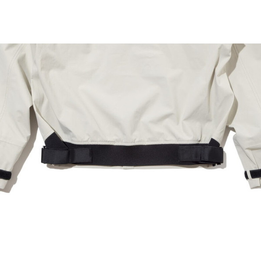 攻めのウェーディングに、快適と安心を。水しぶきや突然の雨、そして夜明け前や日没後の暗闇。ウェーディングに挑むアングラーを守るために生まれたのが、ウェーディングショートジャケットです。ウェーディング姿勢に最適化した短めの着丈で、水面に干渉しにくくウエーダー着用時の動きを妨げません。また体にフィットするようウエストを絞ることができるので、裾部分がパタつかず快適な動作が可能です。本体生地は透湿防水生地を使用し、風だけでなく雨や波飛沫を防ぎます。透湿防水生地:雨や波しぶきを防ぎながら、内部のムレを逃がし快適性をキープ。ショート丈設計:ウェーディング姿勢に最適化した短めの丈で、水面に干渉せず動きを妨げない。リフレクトロゴ&リフレクトステッチ:光を反射し、暗闇での存在を知らせることで安全性を高めます。ナイトゲームや早朝釣行でも安心です。ウエスト調整機能:体にフィットさせることで、裾がパタつかずキャストやファイトに集中できる。過酷なフィールド環境に立つアングラーのために「攻めのウェーディング」に必要な機能を凝縮した一着。