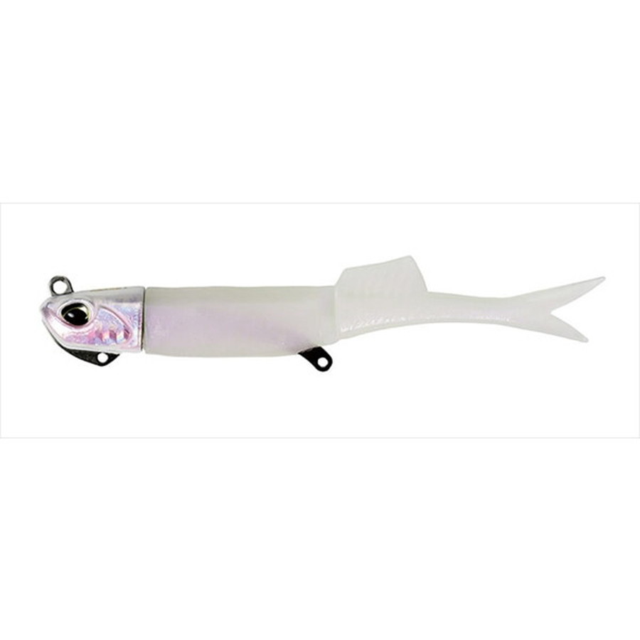 シャッド、グラブに続く第三の波動。小魚をイメージさせるスリムなシルエットと尾部の先割れフィンとボディ中央の体節と背中のバイブスフィン(背ビレ)が、新しいハウルフィッシュの特徴。薄い体節でボディを区切るだけでなく、背中のバイブスフィンで水を受けることで、後ろ半分が細かく高速微振動(バイブレーション)してヒラメを誘う。横流れを受けてターンする際は、体節より後ろが一瞬、大きく曲がって、アクションが変化して喰わせに繋がる。ワームマテリアルを見直したことに加えて、体節からテールまでが薄い設計のため、テールがブレずに飛んで飛距離がアップ。同時に糸絡みも軽減。