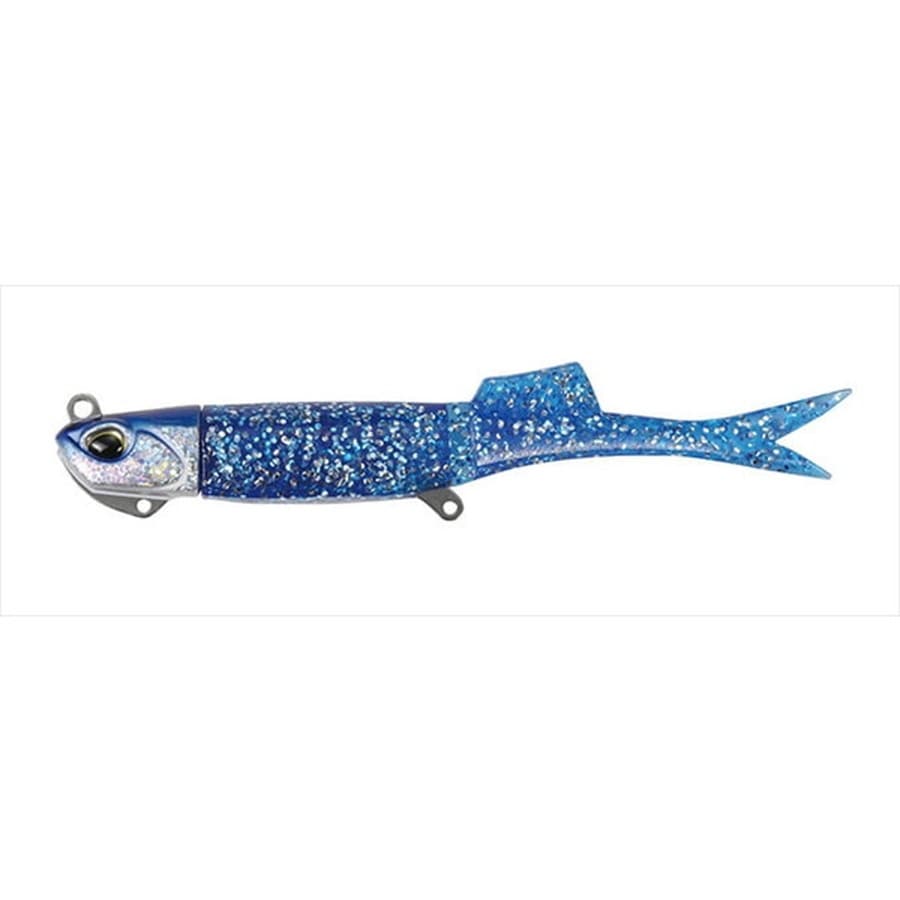 シャッド、グラブに続く第三の波動。小魚をイメージさせるスリムなシルエットと尾部の先割れフィンとボディ中央の体節と背中のバイブスフィン(背ビレ)が、新しいハウルフィッシュの特徴。薄い体節でボディを区切るだけでなく、背中のバイブスフィンで水を受けることで、後ろ半分が細かく高速微振動(バイブレーション)してヒラメを誘う。横流れを受けてターンする際は、体節より後ろが一瞬、大きく曲がって、アクションが変化して喰わせに繋がる。ワームマテリアルを見直したことに加えて、体節からテールまでが薄い設計のため、テールがブレずに飛んで飛距離がアップ。同時に糸絡みも軽減。