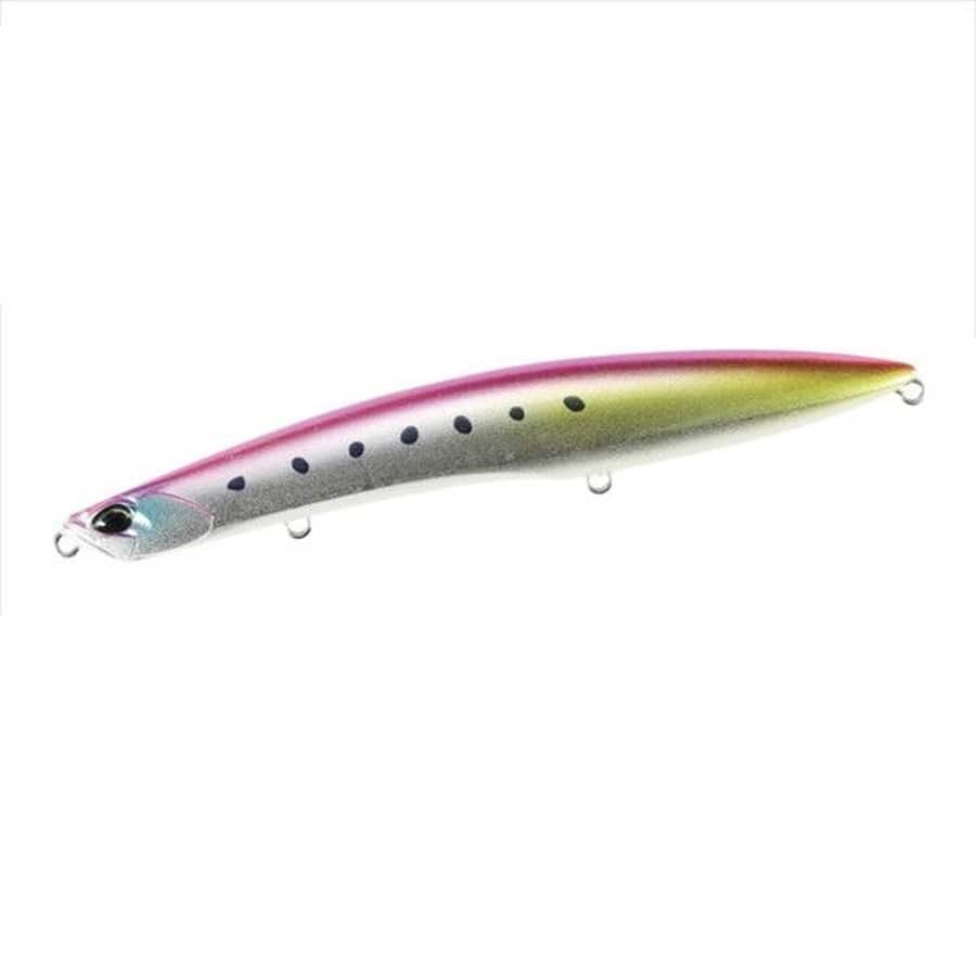 単なるサイズ違いではない。浮遊感を持ったペンシルだ 名前はウェッジでも、形状や性格も異なるのが140S。踏襲したのは圧倒的な飛距離と扱いやすさのみ。140Sはただロングになっただけでなく、ボディ形状によりボリュームを増大。半端ないアピール力を獲得しました。それでいながら120Sよりも2gの自重アップに留めてあるために浮力を強めに残してあり、浮遊感を持った左右への大ぶりなスイングアクションとともにスローなシミーフォールを実現。よりスローに、より水平に近い姿勢で泳ぎ、大型ベイトを捕食するヒラメや青物に強い効果を発揮します。