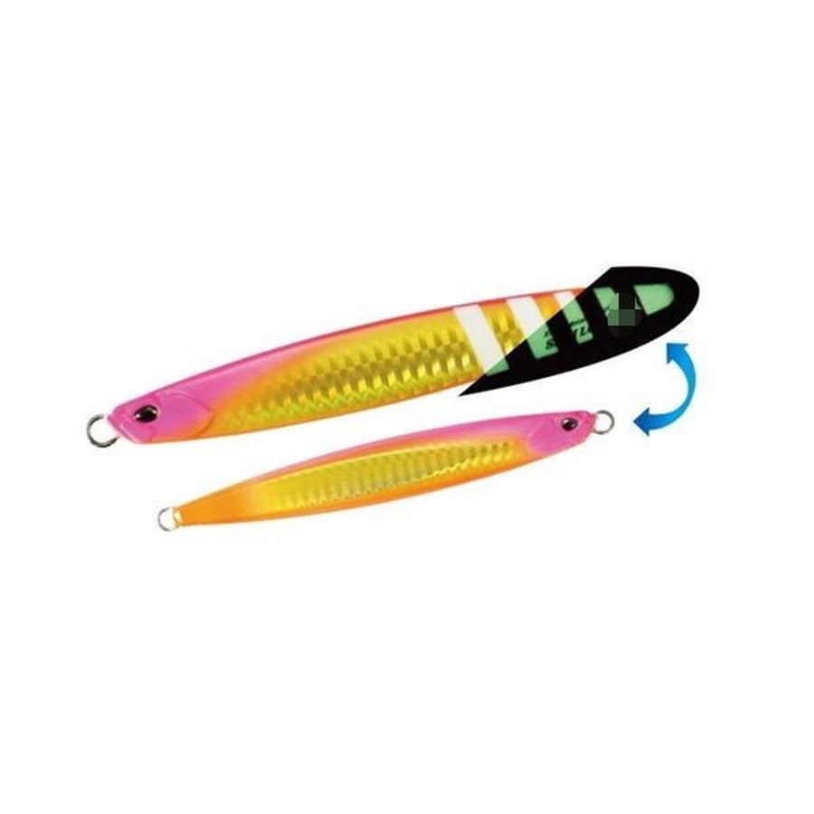 従来のドラッグメタルフォースは、小粒ボディによるクイックなターンとフォールを得意とする形状であった。それに対し、フォースセミロングは「よく飛び・漂い・喰わせの姿勢」に特化したセミロングタイプのジグである。左右非対称の形状により、狙ったレンジでしっかりとサイドスライドさせることが可能。さらに、重心バランスを6:4に設定することで、飛んだ後も潮にうまく乗り、フィッシュイーターが好む水平姿勢をキープしやすい設計となっている。