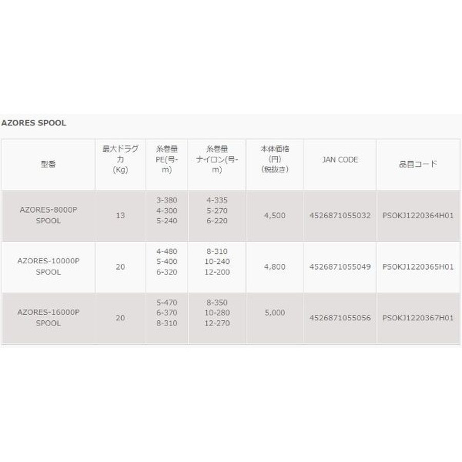 SWリールで好評のアゾレスに替えスプールのラインナップが加わりました。