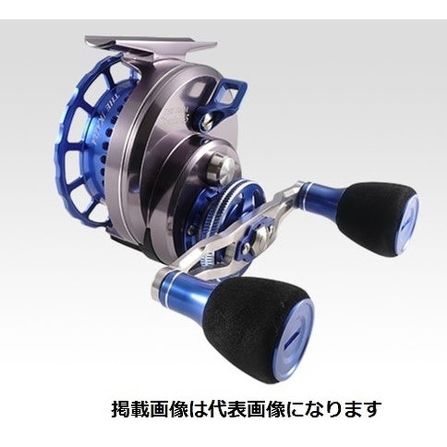 カラー:鏡面チタン/ブルー ギア比/1:3.8 ハンドル1回転巻き上げ(cm):55 自重(g):195 スプール径(mm)/幅(mm):65/23 標準糸巻量(号):・フロロ:0.8~3.0・PE:0.4~1.0(100m) ボールベアリング:5 ワンウェイベアリング:1