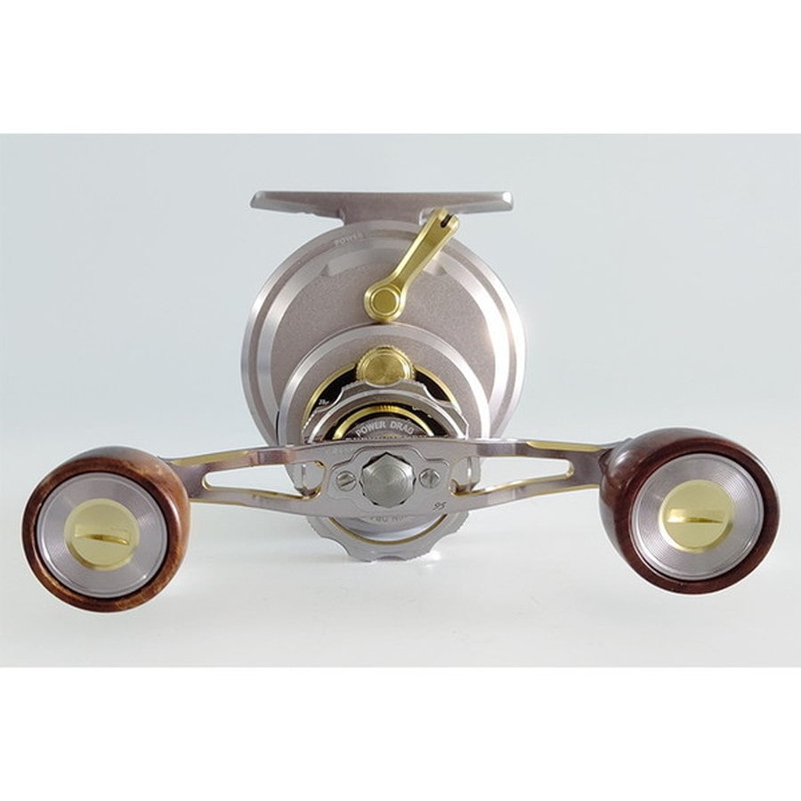 アルミ合金6061-T6材 鍛造精密マシンカットリール。サンディング&光沢仕上げの2パターン表面処理。『ノンシンクロドラグ機構』搭載、スプール単独逆転機構。95mmクランクアルミ合金ハンドルアーム&『Gorimaki』WOODハンドルノブ。リールカバー付き。フラット底/深溝スプール。シリアルナンバー彫刻。