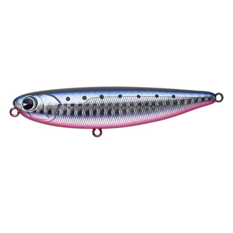 シーバスのトップウォーターゲームで頻発するミスバイト対策として、フッキング率を向上させるために浮力をギリギリまで落とし、吸い込みを重視したペンシルベイトです。アングラーのロッドアクションに機敏に反応し、真横90度近くにグイッと首を鋭く振る動きはシーバスのバイトを誘発します。★全長:90mm