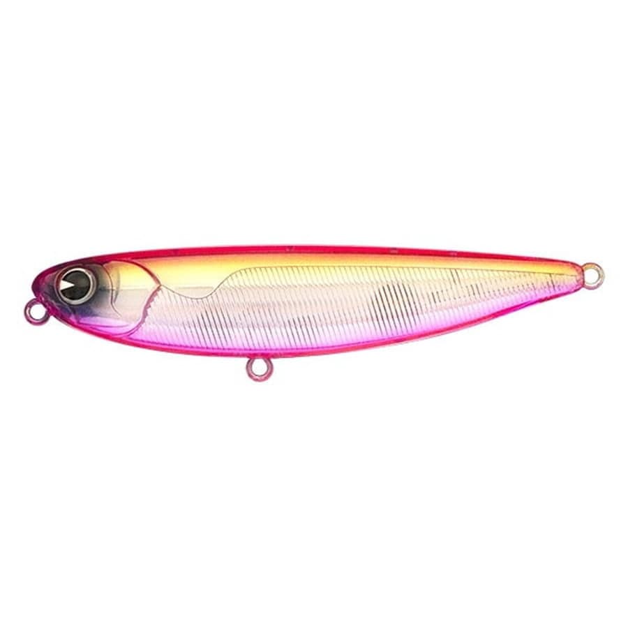 シーバスのトップウォーターゲームで頻発するミスバイト対策として、フッキング率を向上させるために浮力をギリギリまで落とし、吸い込みを重視したペンシルベイトです。アングラーのロッドアクションに機敏に反応し、真横90度近くにグイッと首を鋭く振る動きはシーバスのバイトを誘発します。★全長:90mm
