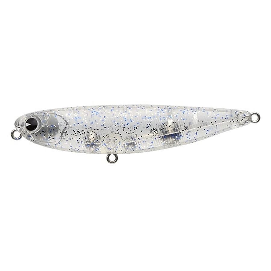 シーバスのトップウォーターゲームで頻発するミスバイト対策として、フッキング率を向上させるために浮力をギリギリまで落とし、吸い込みを重視したペンシルベイトです。アングラーのロッドアクションに機敏に反応し、真横90度近くにグイッと首を鋭く振る動きはシーバスのバイトを誘発します。★全長:90mm