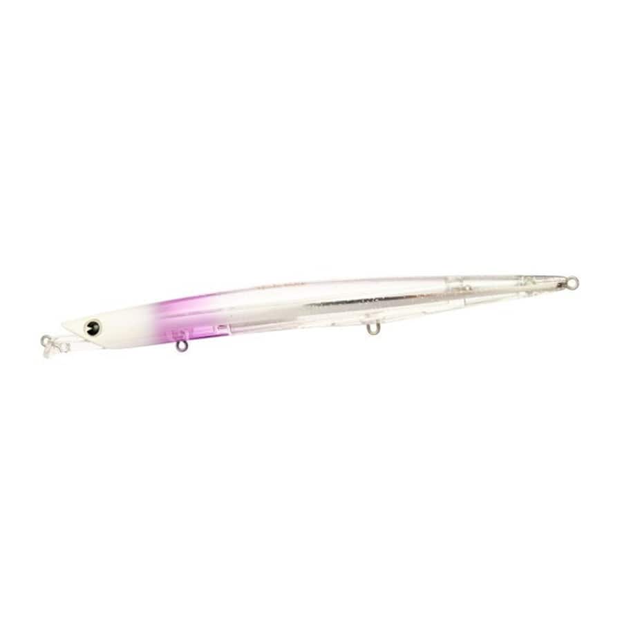 さらに遠くのシャローを責める、ビッグサイズフィネスミノー。オリジナルモデルの水面直下レンジキープ力と微弱ロールアクションを継承しながらサイズアップ。大きくなった分、巻き速度をあげた時のテールの振りは抑えるよう調整しました。また、後方に集中させたウェイト配置で、細身ミノーにありがちなキャスト時の横風の弱さも克服。大型ベイトパターンに限らず、ベイト過多などアピールを強めたいときにもおすすめです。