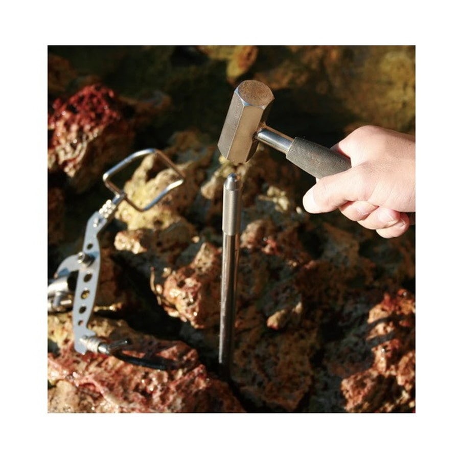ヘッド部は屈強な六角ステンレスを使用。コンパクトながら硬い土へのペグ打ちも楽々。携帯に便利な167mm。★サイズ:全長167mm、頭部65mm