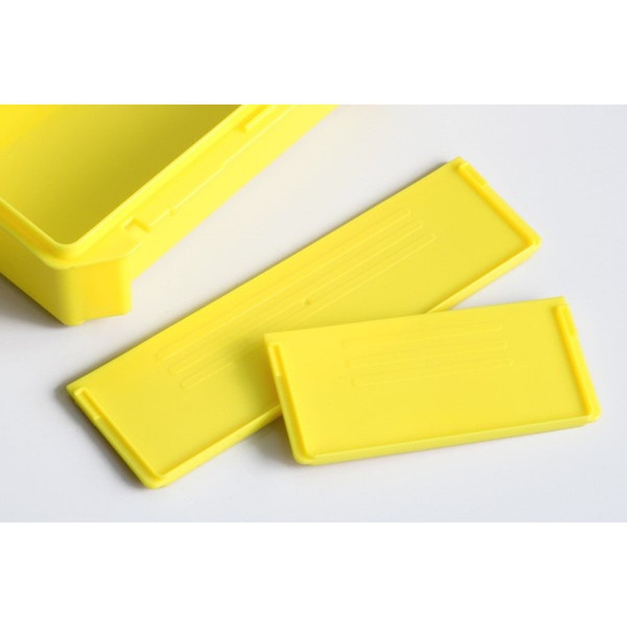 サイズ:205×145×60mm、 素材:ポリプロピレン(本体)/ABS(止具)、 カラー:イエロー(本体)/ネイビー(止具)、 仕切板:2種付属★仕切板:2種付属