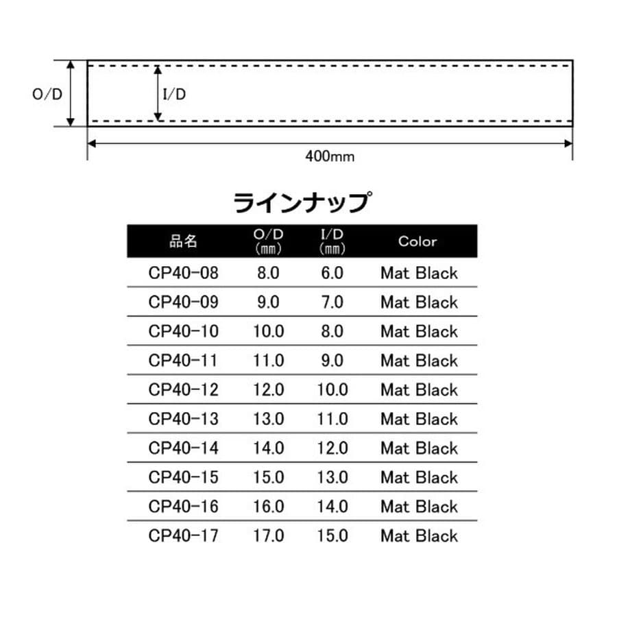 グリップ延長やセパレートグリップの改造に便利なストレートカーボンパイプです。バット部の強度アップや感度アップに最適なベーシックモデル。