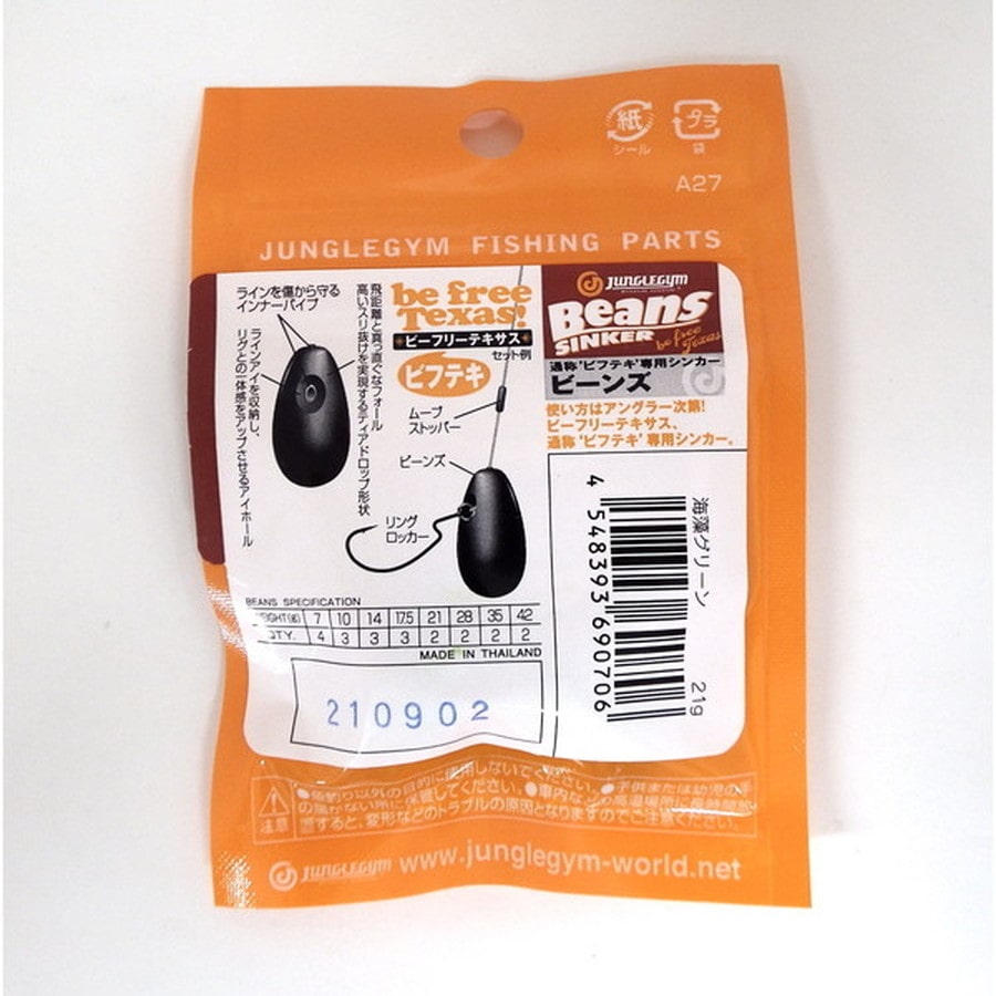 ビーンズシンカーにECLIPSEコラボが新登場!ビーンズシンカーとはテキサスリグとシンカー直付けリグ、2つの長所を併せ持つビーフリーテキサス、通称『ビフテキ』専用シンカーです。ビフテキは特徴である飛距離、ファストフォール、すり抜け、ハイアピールアクション、高いフッキングを実現するハイパフォーマンスシンカーです。そんなビーンズシンカーから登場する今回のECLIPSEコラボは、ロックフィッシュやボトムフィッシュを狙う際に最高な海藻グリーンが登場します!海藻グリーンのナチュラルな色が魚に違和感なくバイトさせます。また海藻の多いエリアでストッパーの無いフリーな状態でシンカーのみを海藻に隠せば、違和感が極めて低い状態でワームを魚にアピールでき、より多種多様な、そしてプレッシャーの高い魚をキャッチできるでしょう。