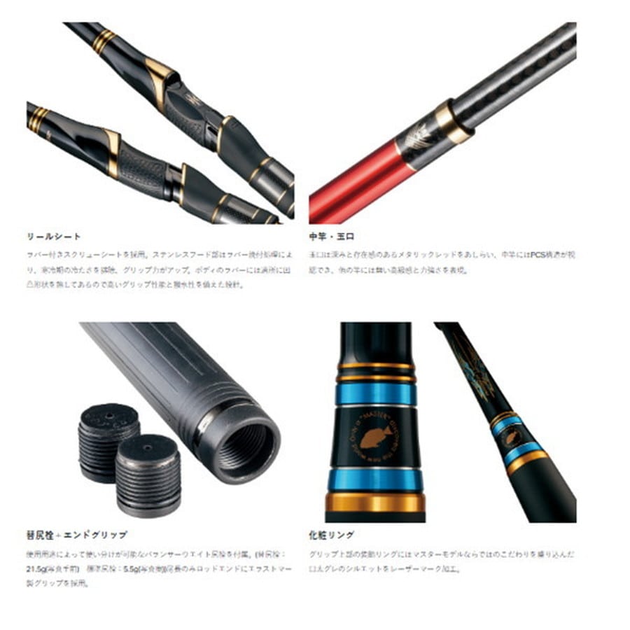 1号クラスの柔軟性を持っておりますので、ハリスをいたわりながら思い切って曲げることが可能。また、スクリューシートにより大物が掛かっても安定感があります。繊細な仕掛けを使用される方や、胴まで曲げて楽しみたいというこだわりを持った方におすすめです。★全長:5.3m