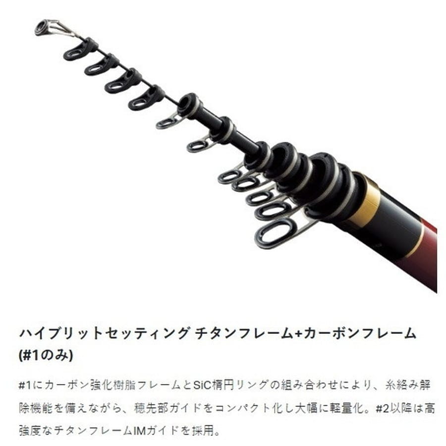 【磯竿作りの知見と最新素材の融合】長年、フィールドテストを繰り返し、がま磯が受け継いできた伝統の胴調子。その胴調子と、張り・粘りを両立させる最新のカーボン素材が出合いました。その結晶がデニオスです。デニオスは胴調子を継承しながらも、狙ったポイントに仕掛けを振り込んだり、繊細なアタリで魚を掛けるなどの先調子らしい操作性も併せ持ちます。【次世代の胴調子『先軽胴調子』】高強度だから軽くできる「TORAYCA(R)T1100G」を竿先にかけて採用したことと、軽くて高い剛性感を持つCIMガイド(カーボン樹脂ガイド)を1番穂先に採用することで、細身肉厚設計の粘る竿にありがちな持ち重り感を払拭することに成功しました。先軽胴調子というまったく新しい概念の誕生です。渋い釣況で貴重な1尾を確実に掛けて、確実に獲ることが命題の競技会などにも最適です。【1号 繊細な攻略に】シリーズではいちばんやわらかく柔軟性に優れていますので、細ハリスを使った、繊細な口太グレ釣りに最適。適正サイズは30~40cm。