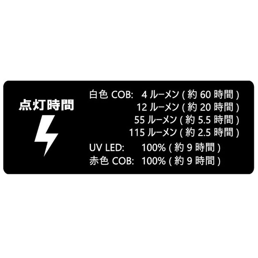 ●バッテリー残量表示付き。●ツバ上装着タイプで、視界の邪魔にならない。●手元のみを照らす手元ライトモード。● IPX4(防滴仕様)。●メモリーライト機能付き。●バッグ内での誤点灯を防ぐロック機能付き(1秒間に2度押しで点灯)。●クイックオフ機能:3 秒後以降に 1 回押せば消灯。★サイズ:約D43×W55×H23mm 重量:(充電池込み)約32g 使用電池:リチウムポリマー600mah ※実物と色が違って見える場合があります。あらかじめご了承下さい。