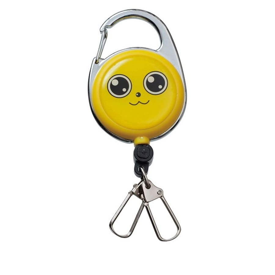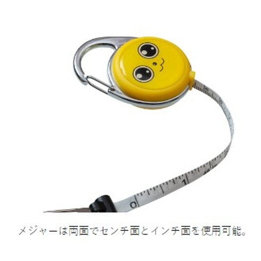 100cmメジャー付きピンオンリール。カラビナタイプで、バッグのDリング等に簡単装着!便利なスナップ2個付き。ラインカッターやハサミ等のツールを付けると便利!