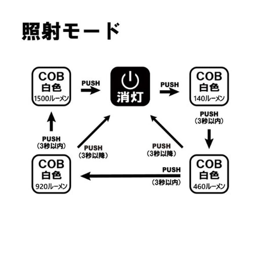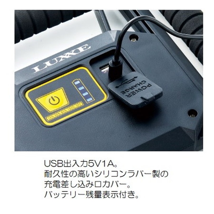 強力白色COB1500ルーメン。◆耐久性に優れたUSBタイプC。◆20W白色COB LED。◆バッテリー残量表示付き。◆クイックオフ機能(3秒以降に1回押せばオフ)。◆メモリーライト機能(前回使 用のライトから点 灯)。◆USB出入力5V1A。◆耐久性の高いシリコンラバー製の充電差し込み口カバー。★サイズ:(本体)D240×W220×H25mm 重量:(本体)約645g(充電池込み) 使用電池:リチウムポリマー4400mAh 充電時間:約6.5時間