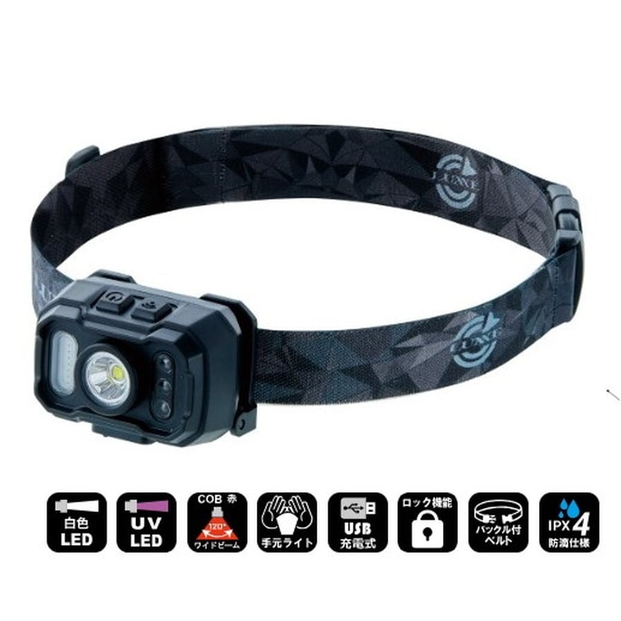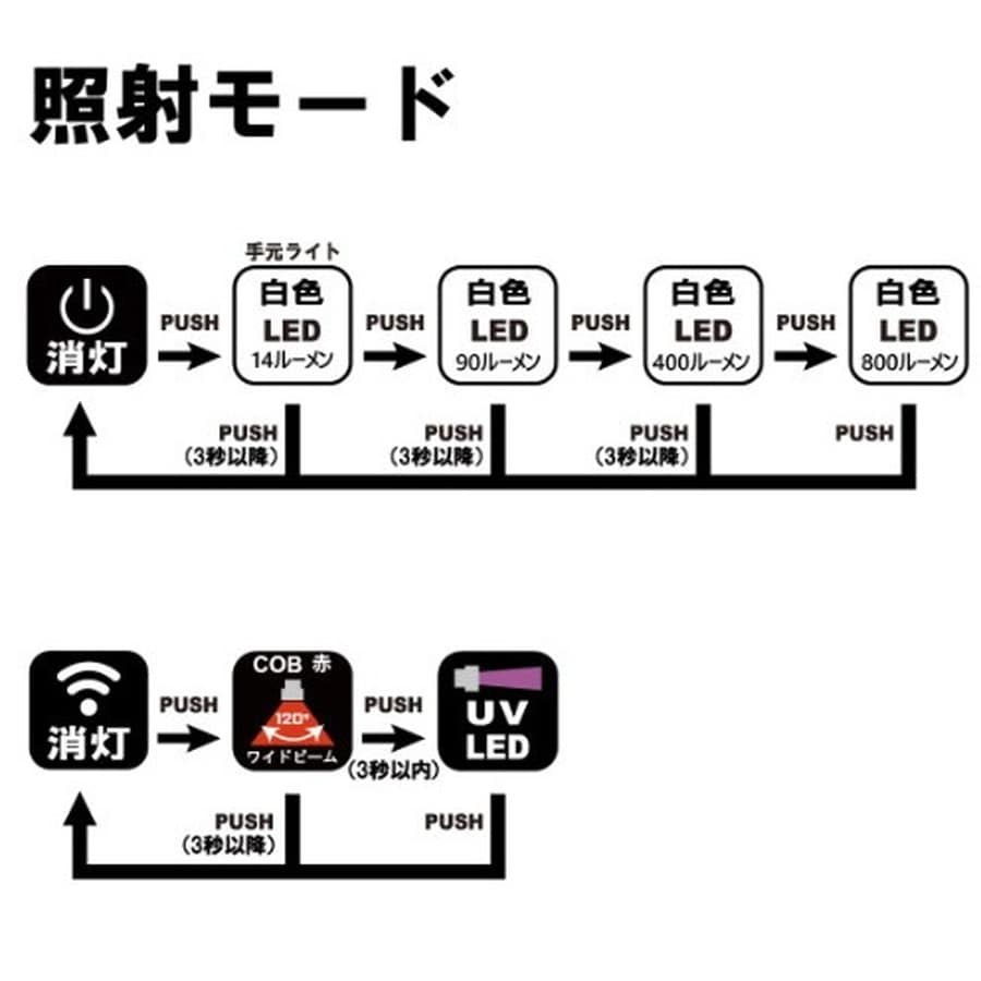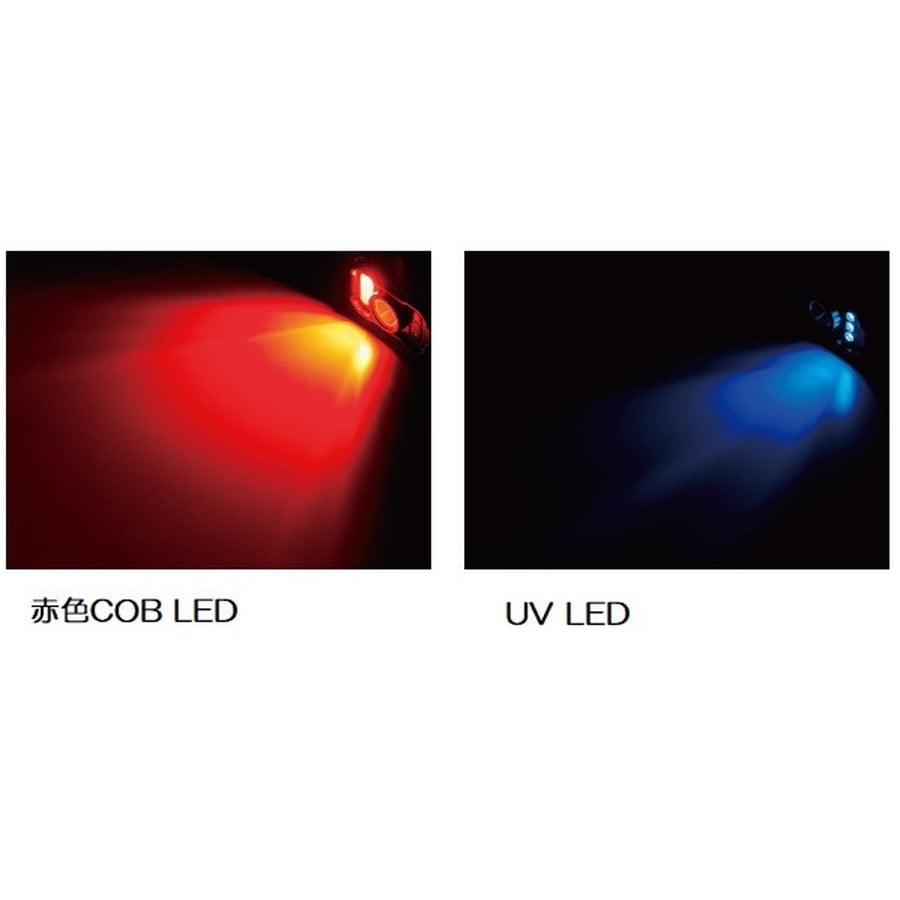 強力白色LEDモデル。◆バッテリー残量表示付き。◆クイックオフ機能(3秒以降に1回押せばオフ)。◆メモリーライト機能(前回使用のライトから点灯)。◆USBタイプC。◆激しい動作でも角度がズレにくい新プレート採用。◆白色LED手元ライト(14ルーメン)。