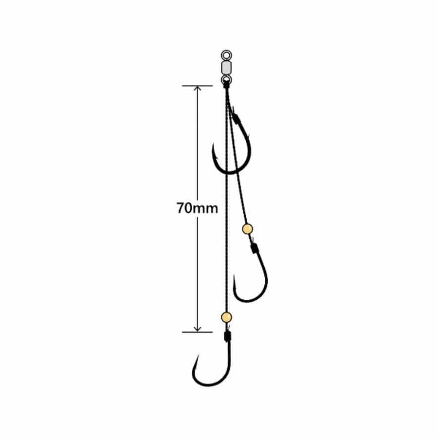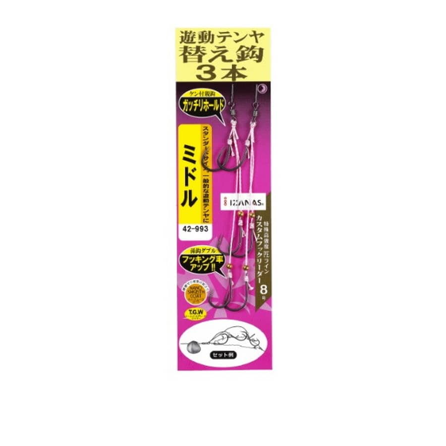 孫鈎ダブルでフッキング率アップ!活きエビに負担の少ない小型親鈎はケン付きでエビをがっちりホールド孫鈎ダブルでフッキング率アップ!中~大型のエビには尾、腹、頭部と3点のバイトポイントをカバー。小さなエビには3匹付けなど欲張り仕様にも対応。カスタムフックリーダーの強度としなやかさと適度な張りが活きエビの動きにも追従。しなやかさは冷凍エビでも頭部欠落を防ぎます。