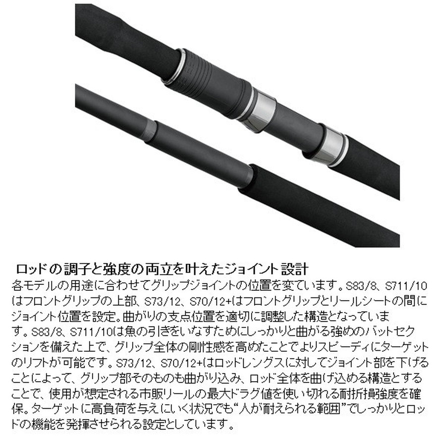 本作に冠した「レイグリット=Ray(一筋の光)+Grit(諦めない心)」とは、【「Ray of hope. Grit your mind.」:希望の光を宿す強き心】というメッセージを込めています。「格闘技」さながらの巨魚とのやり取りで、極限の状況下においても一筋の光を見出し、あきらめることなく立ち向かってもらいたいー自身の限界を超えるその瞬間の一助となるに相応しい業物として昇華させました。 また、レイグリット「TC」、すなわちTuna Castingのイニシャルを配した本シリーズは大型クロマグロをメインターゲットとして見据えたラインナップで構成しています。「ロッドを立てた真っ向勝負のシングルファイト」を叶える要素を「どこまでも淀みなく曲がりこむベンドカーブ」「十分なリフトパワー」「不安なく耐える破断強度」として織り込むことにこだわりました。