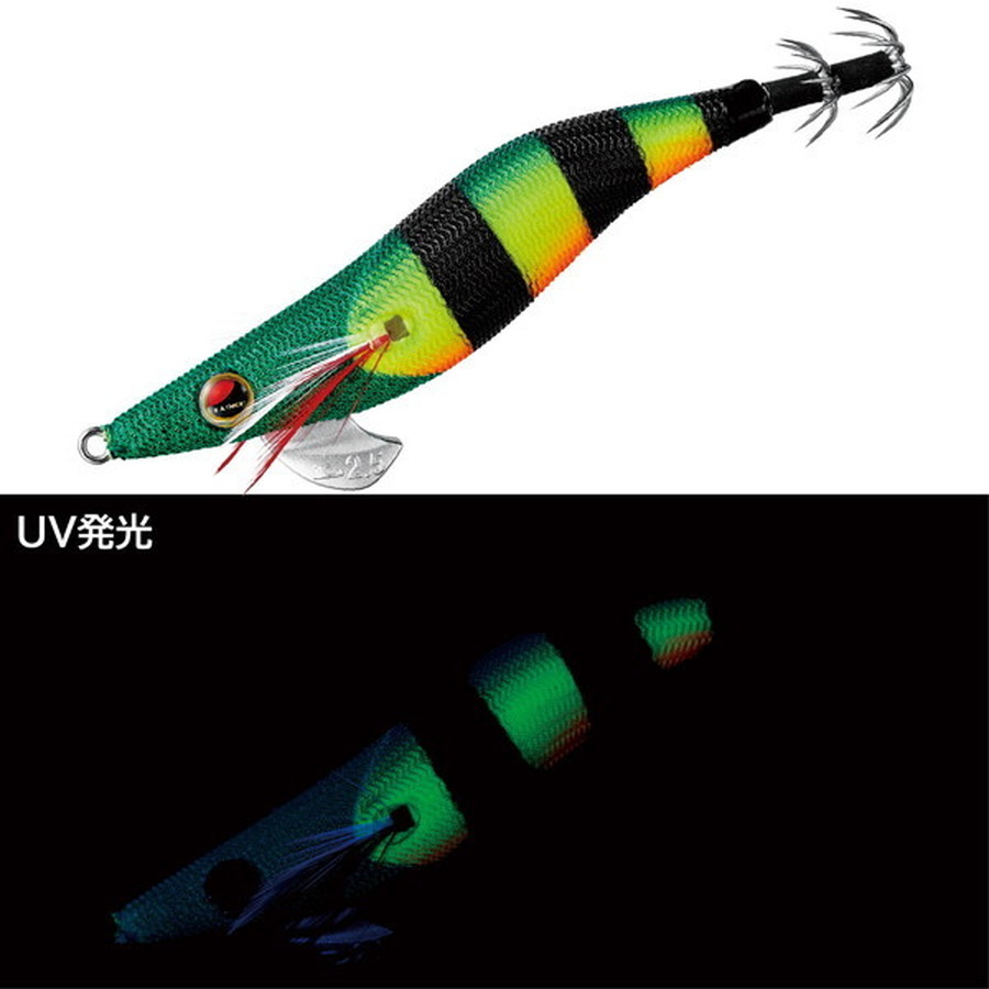 各地で技群の実績を残し続けていたエヴォリッジ2.5号シャローモデル イカメタルカラーがスピードメタル エギドロッパーとしてリニューアル。ボディー形状、シンカー形状、重量はそのままに、鈎屋のノウハウを反映させたGamakatsu製カンナを採用。僅かなアタリを確実にヒットに持ち込むことが可能になりました。カラーローテーションを前提として、刻一刻とヒットカラーが変わる激戦区でテストを積み重ねた充実のカラーラインナップにより、あらゆる状況に対応可能です。【#45 グリーンヘッドパーチ】山陰エリアを中心に爆発的釣果を叩き出しながら惜しくもラインナップから姿を消した、「グリーンヘッド/タイガー」が時を経て復刻!オリジナルと変わらず、グロー系カラーに反応が無い時に効果を発揮します。