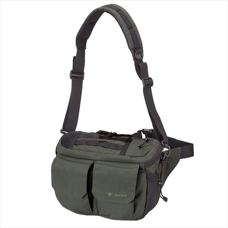 一見するとワックスクロスのようにも見える落ち着いた表情のポリエステルツイル生地を採用したタックルバッグ。ショルダーバッグ、またはヒップバッグとしても使える2ウェイ仕様です。フロント部にはマチ付きのポケット、メイン気室内にはメッシュポケットを配し、ボックスや小物をシステマティックに収納可能。サイド部にはボトルポケット、プライヤーポケットを装備しています。タックルバッグ使用時に悩ましいランディングネットの持ち運び問題を解決すべく、背面にはランディングネット用スリットを設けました。