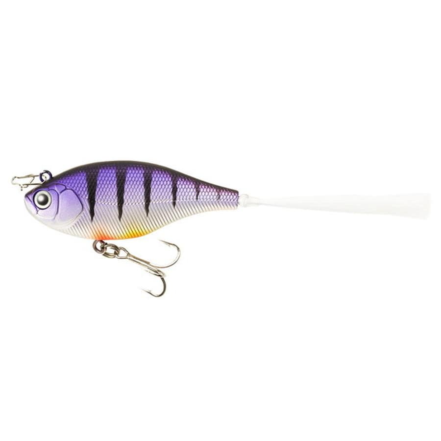 水面直下・水面の攻略法としてのI字系ルアーはとても効果的です。しかし、「見に来るが喰わない」そして「気がつかれない」ことが多いのもこの釣りの特徴。そこでトラファルガー5フラットは、喰わないバスに対しアングラー側から仕掛けられること、また存在感のあるアピール力を加えることのできるi字系を目指し開発を進めました。重要なのは、基本はI字状態でもシェイクしたときにはキレのあるアクションをすること。そのためアクション時のロールが強いルアーに仕上げています。バスが視覚に頼る、クリアウォーターでの使用が多いI字系。ローリングアクションによるフラッシングは、水の透明度が高ければ高いほど効果を発揮し、バスにアピール。たとえ無風状態でもスイッチを入れる力を発揮します。またテール部分に取り付けられた「TMCモルフォファイバー」は世界一美しい蝶、モルフォ蝶の発色原理を応用して作られた特殊繊維。屈折率の違う成分が幾十にも織り成して形成されているこの繊維は、光が当たると淡い自然な輝きを放ち、バスに最後まで見切られることなくバイトに持ち込みます。