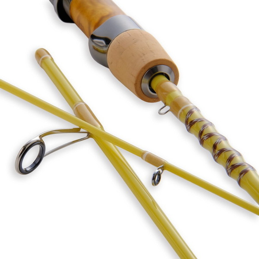 Watershed=分水嶺。異なる水系に分かれる雨水の事を言いますが、物事の方向性が決まる分かれ道との意味もあります。「どちらの川に入るか●」「どちらのルアーを使うか」「どの色を使うか」「どの時間に入るのか」それが釣り人の分水嶺。「時期、時間、場所、状況」を的確に判断しトラウトを狙うと言う意味で名前を付けました。全体的にスロー気味なテーパーでゆっくりとキャスト。グラスならではのティップの追従性がフックアップしたトラウトを逃がしません。柔らかすぎず、硬すぎず。現在多用されるシンキングミノーから軽量フローティングミノーまで操れる懐の深いロッドです。2026年はR.BrownとCreamを新色としてラインナップ。