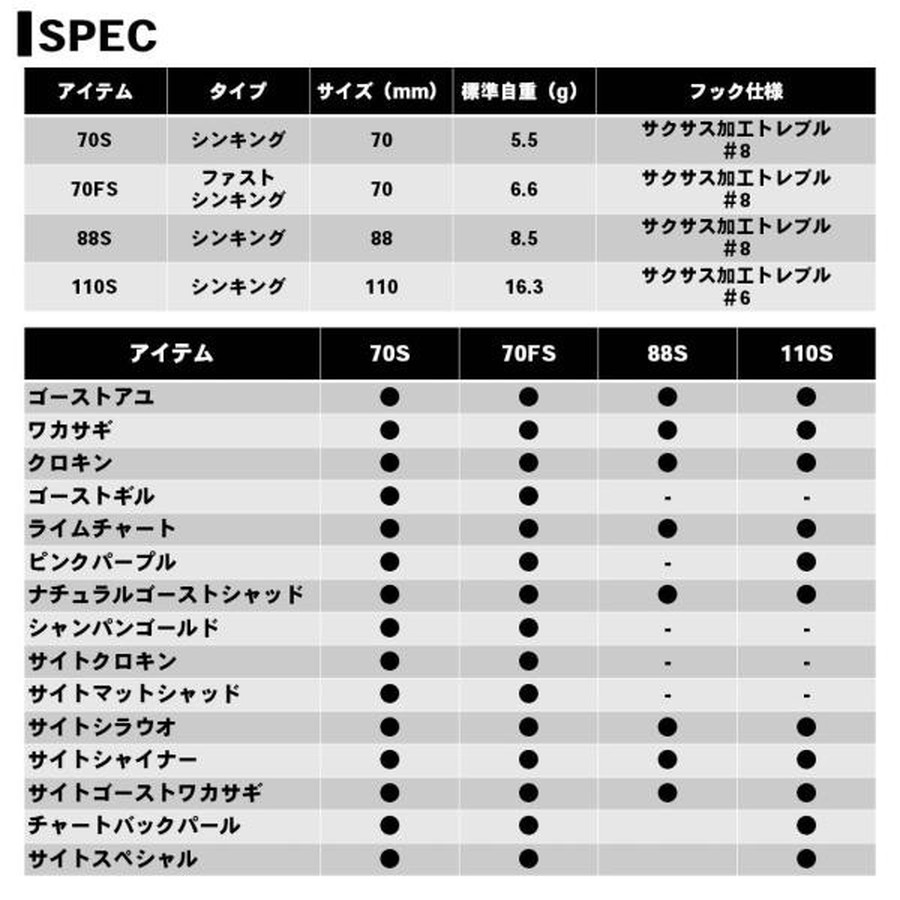 サイズ:110mm 標準自重:16.3g タイプ:シンキング