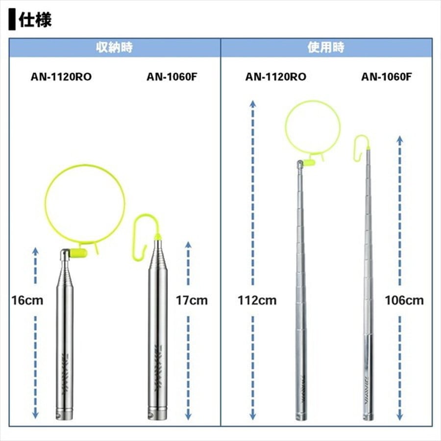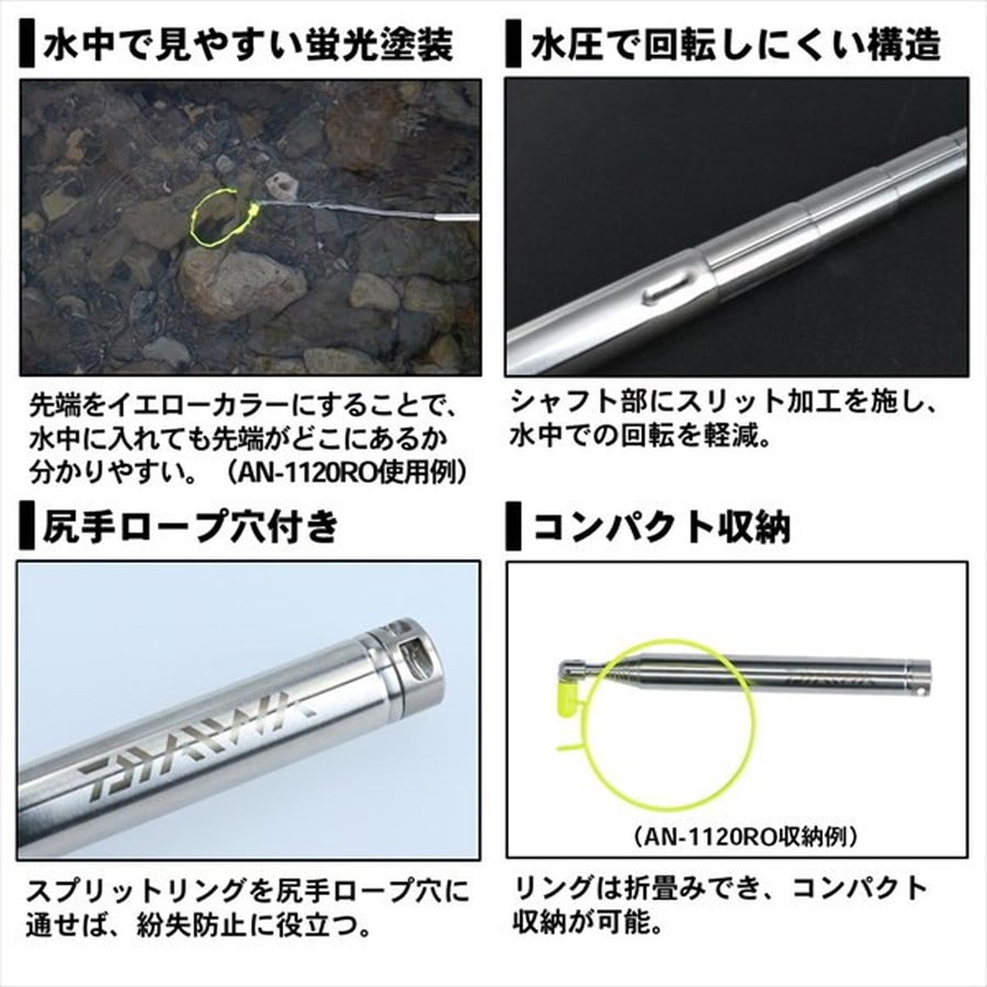 先端タイプ:フックタイプ 使用全長:106cm 収納全長:17cm ★根がかり時にはこれ一本でトラブル解消。 ■水中で見やすい蛍光イエローカラー先端 ■シャフト部にスリット加工をする事で水圧(流れ)によるシャフトの回転がしにくく、根掛りトラブル解消に便利 ■鮎ベストの胸ポケットに収納可能(胸ポケットのサイズにより収納できない場合がある) ■スプリットリングを尻手ロープ穴に通せば、紛失防止の尻手ロープの取り付けが可能、またカラビナを取り付ければベストのDカンにも取り付け可能※掲載している商品の画像は代表画像を表示しています。また実物と色が違って見える場合があります。あらかじめご了承下さい。