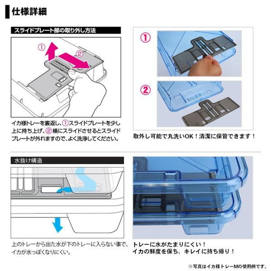 サイズ:400×210×50.5mm★樹脂素材採用でトレーが一度冷えたら温まりにくく、イカを鮮度を保ち、キレイに持ち帰り! ■一度冷えたら温まりにくい樹脂素材採用 ■スライドプレートによる簡単組立、収納 ■トレーに水がたまりにくい水抜け構造採用 ■本体一体構造とスライドプレートが取り外し可能なので洗いやすく衛生的 ■イカだけではなくカワハギ、アジの魚にも使用可能 ■アルミプレートのハイブリッド構造で急速冷却※掲載している商品の画像は代表画像を表示しています。また実物と色が違って見える場合があります。あらかじめご了承下さい。