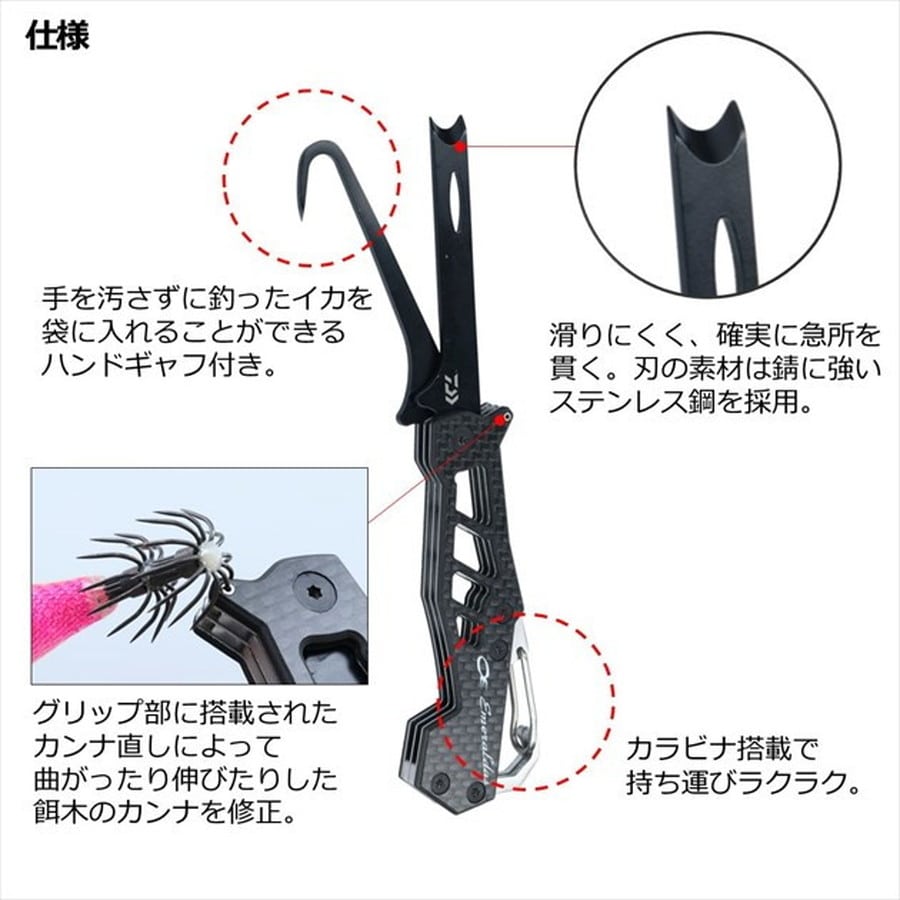 イカシメ刃 ハンドギャフ カンナ直し搭載の三徳折り畳み式イカシメ フッ素塗装で錆びにくさUP!先端形状にこだわり、滑りにくく確実に急所を貫くことが可能。イカを締めることにより、身の透明感が長続き、味や歯ごたえもワンランクアップ!グリップ部にカンナ直しを搭載し餌木の曲がってしまったカンナを簡単修正。ハンドギャフを使うことによって写真を撮る際や釣ったイカを袋に入れるときに手を汚さないステンレス刃部、ハンドギャフにはフッ素塗装を施し耐蝕性UP!カラビナ搭載で持ち運びもラクラク。★カラー:エメラルド サイズ:170mm ※実物と色が違って見える場合があります。あらかじめご了承下さい。