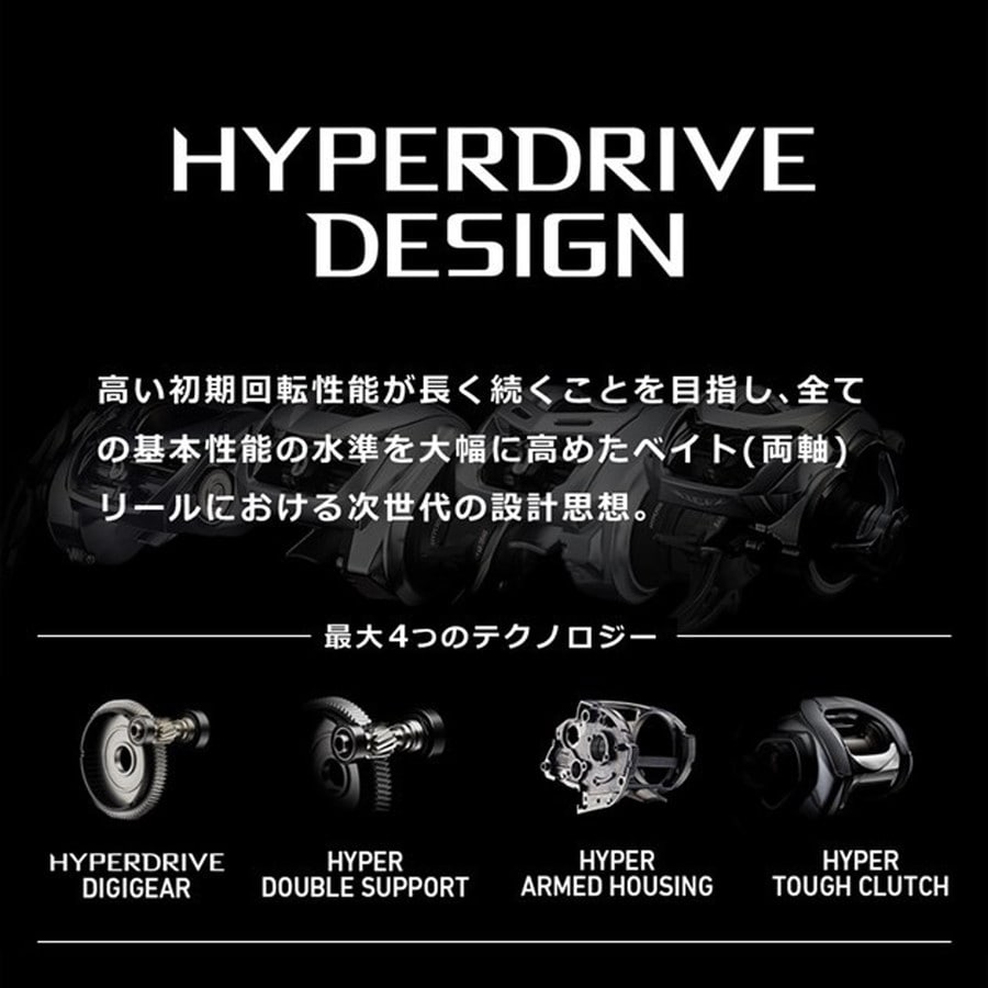 遠投性を極めたスティーズ A TW HLC に待望のエクストラハイスピードモデルが追加。「HYPERDRIVE DESIGN」による初期性能が永く続くことを目指した設計思想の次世代ベイトリールが登場。HYPERDRIVE DIGIGEAR搭載で、強度UPと回転フィーリングUPを実現し、HYPER ARMED HOUSING(Al)でコンパクトながら、強靭なボディ剛性を実現。タフで堅牢で好評のSTEEZ Aモデルを更に遠投性能に磨きをかけスプールφ36mmMAG-Z BOOSTスプールを搭載。BOOST機構により、更なる遠投性能を手に入れたSTEEZのフラッグシップブランドの遠投リールを提案する。